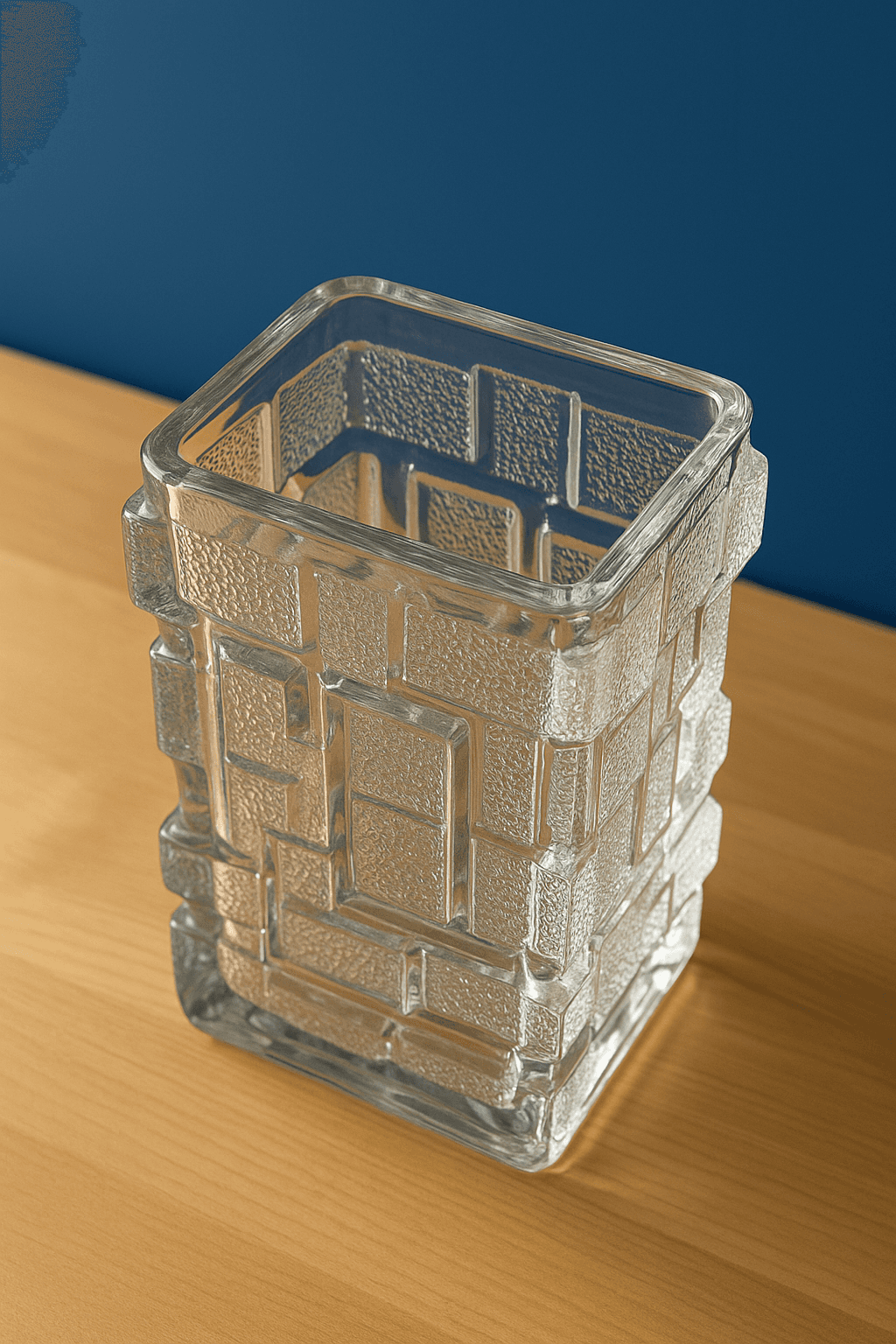 Pattern No. 13261 — known for its architectural “brick” texture and heavy, clear glass.