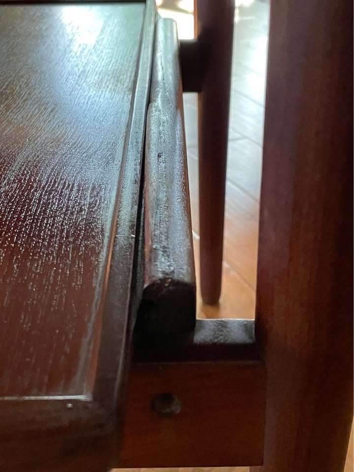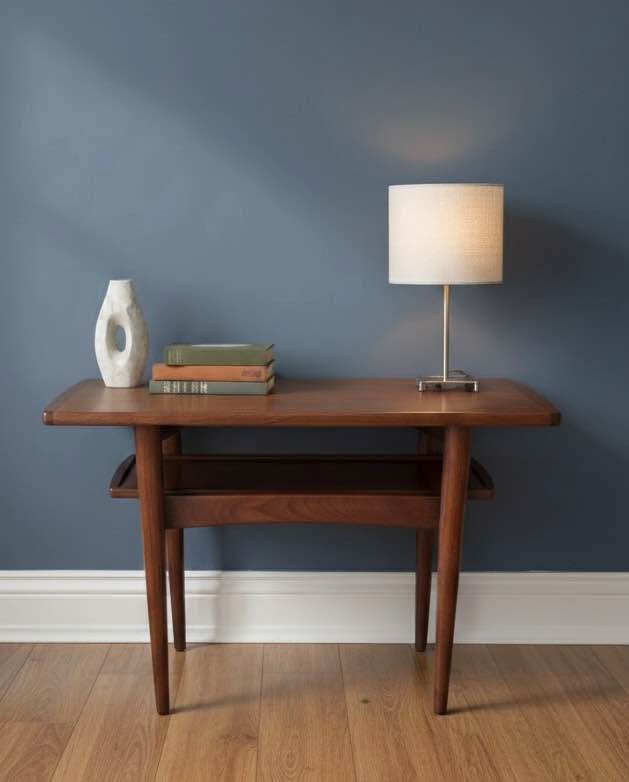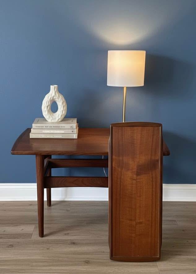 A small cosmetic section beneath the tray was rebuilt during restoration — completely invisible in everyday use and does not affect structure or function. (See photos). The tray glides perfectly, and the table presents well overall. Perfect as an accent table, bedside table, or sofa-side companion in any modern or vintage space.