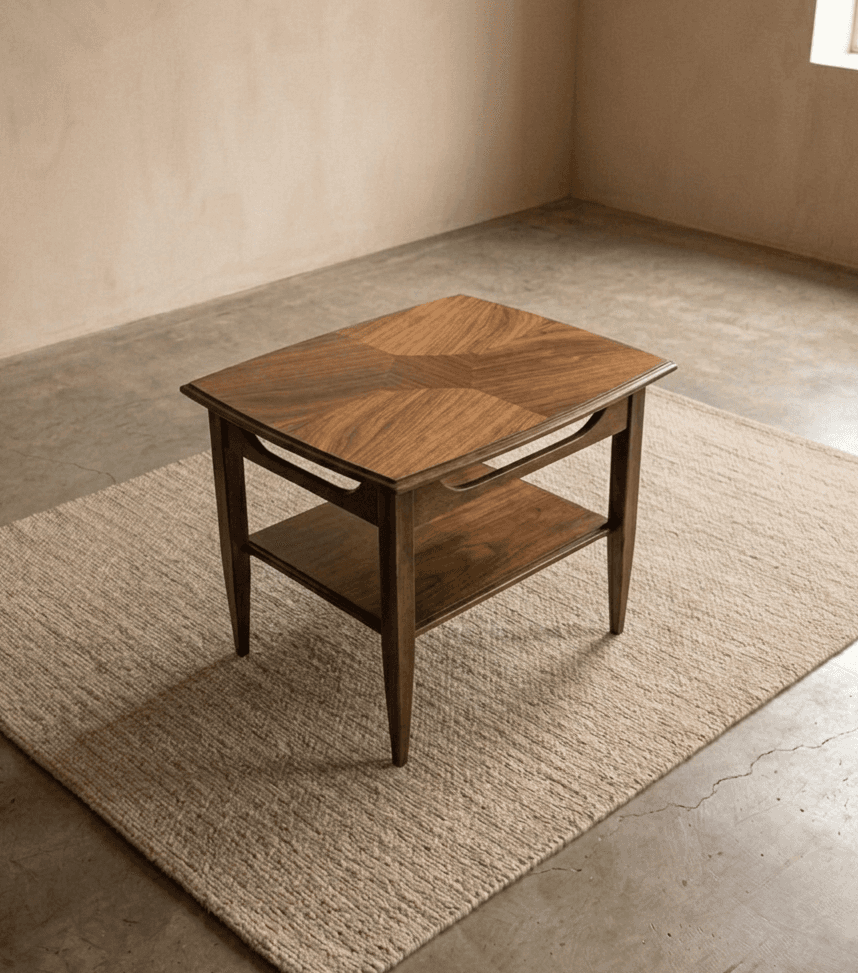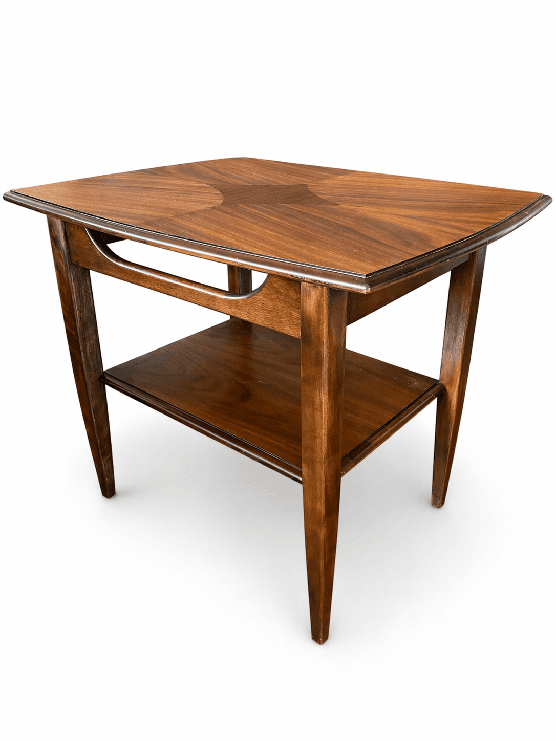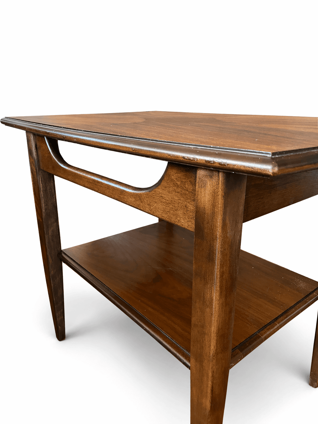 Clean lines, tapered legs, and a lower shelf for added function - ideal beside a sofa or as a standalone accent piece. Top has been professionally refinished and sealed for durability.