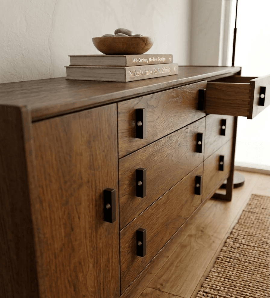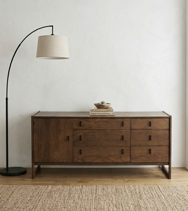 Features a versatile storage layout with six main drawers, plus a cabinet with an interior drawer and adjustable shelf - ideal for a mix of concealed and everyday storage.