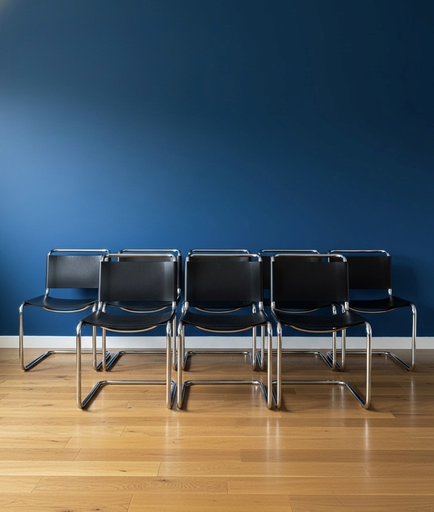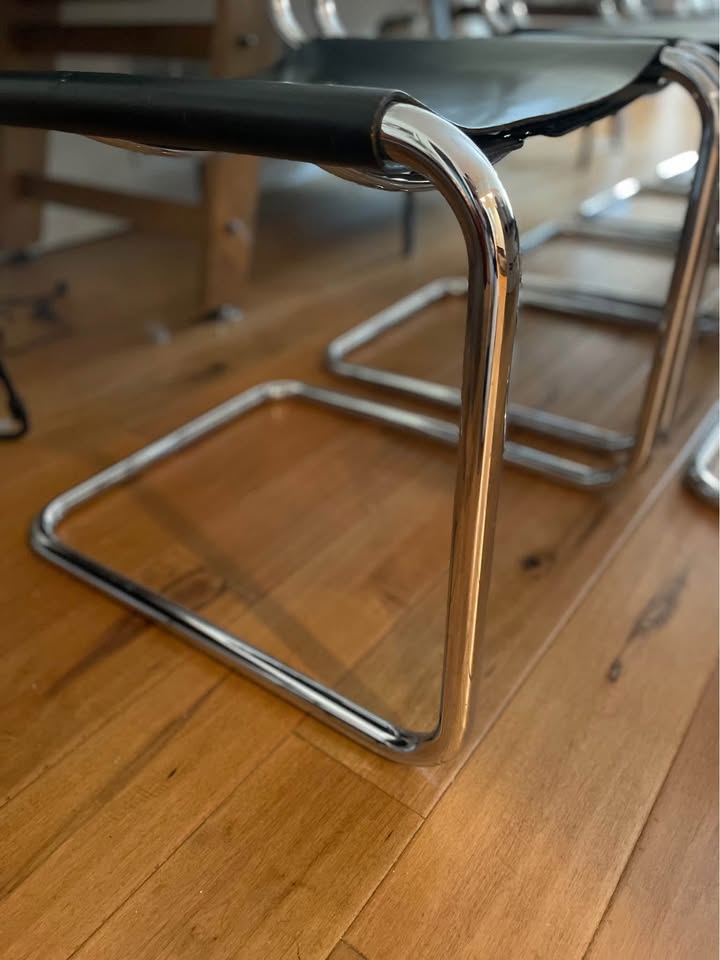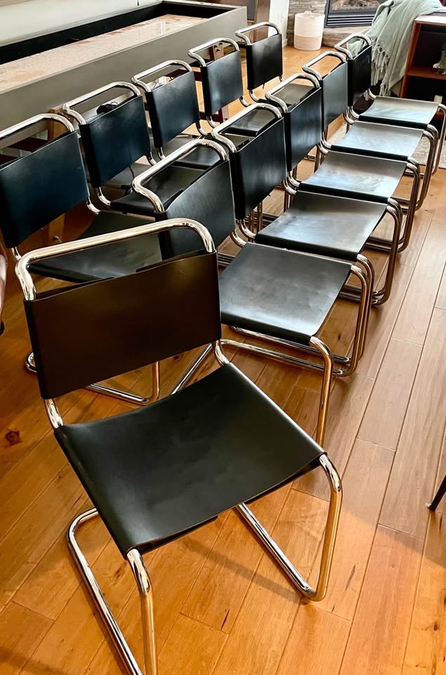 This full suite was originally sourced from a creative agency environment and has been professionally cared for and stored since. Leather remains supple; chrome is bright and clean throughout — a refined and cohesive set, increasingly difficult to source in this condition and quantity.