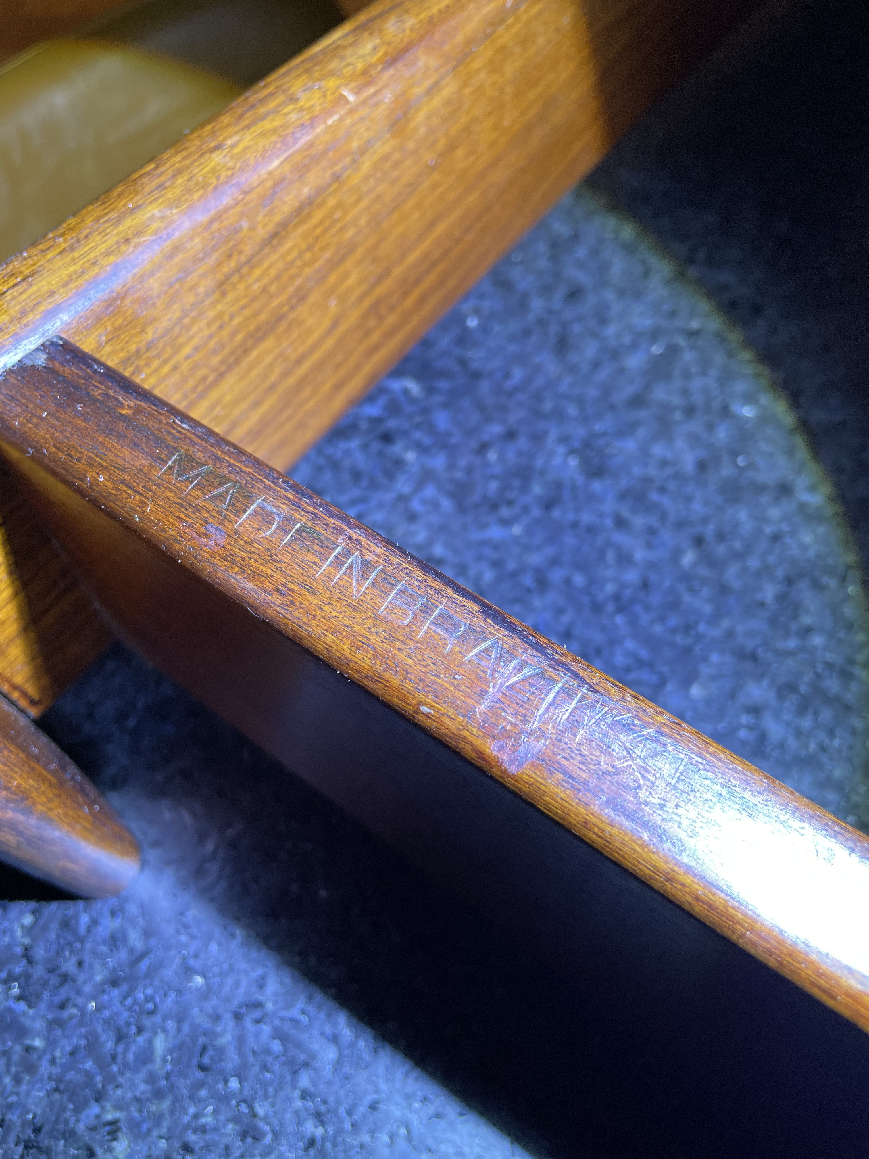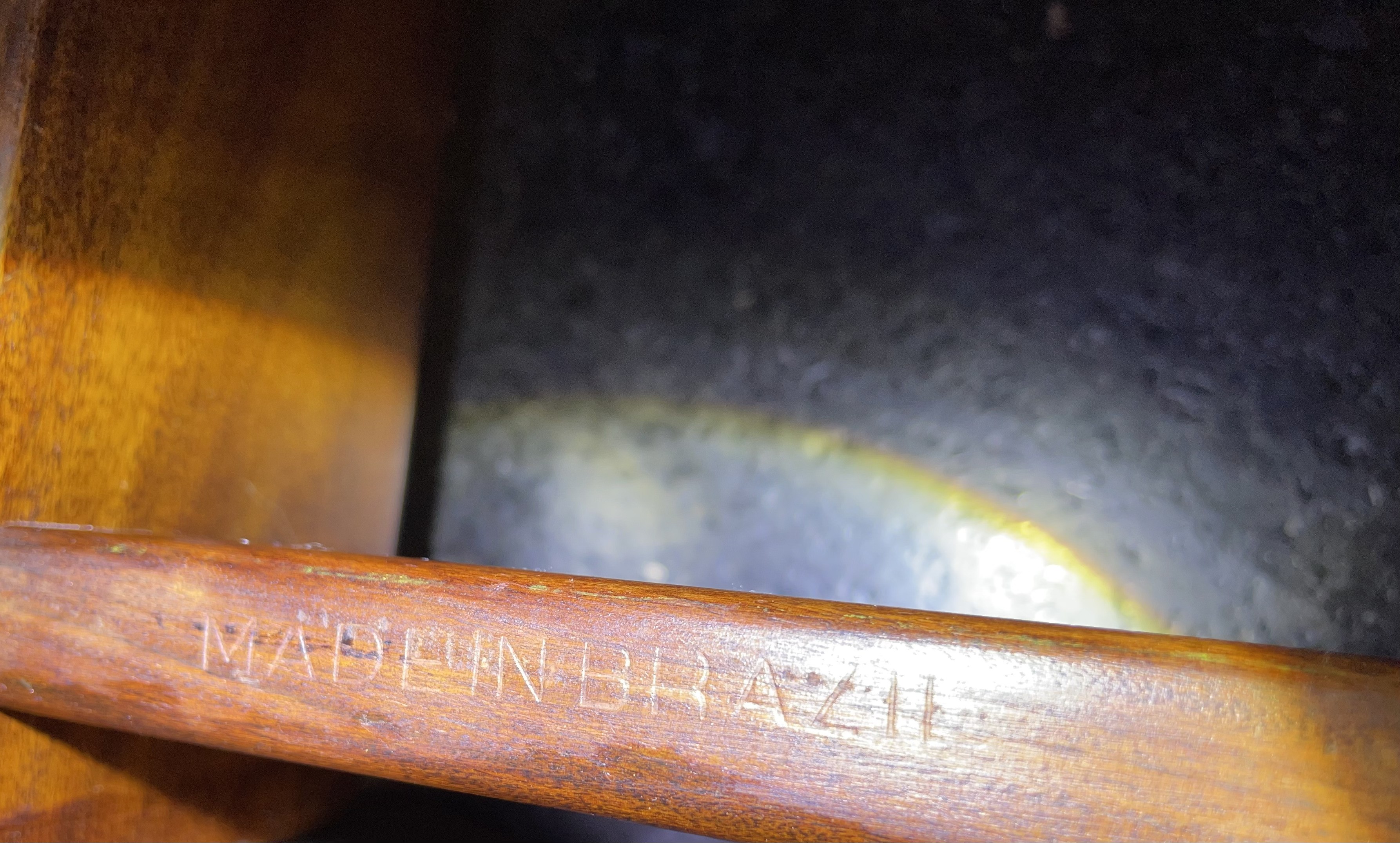 This early run includes two factory hot-etched “Made in Brazil” stamps and the original heavier smoked glass top, both signatures of Lafer’s premium production.