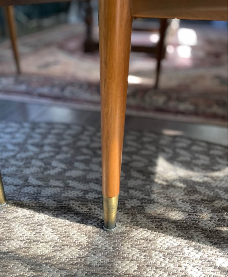 Long tapered legs with light ash details throughout and solid brass toe caps.