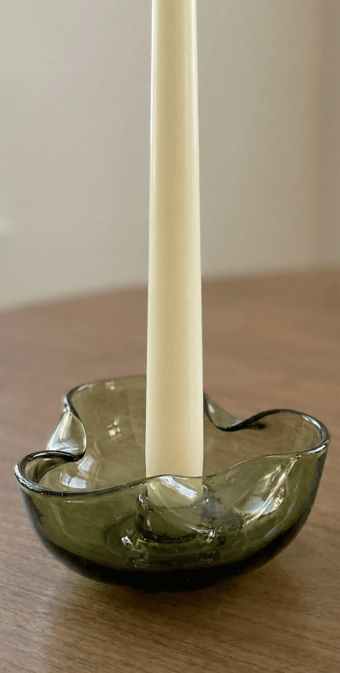 Vintage Olive Glass Ripple Candle Holders — Pair